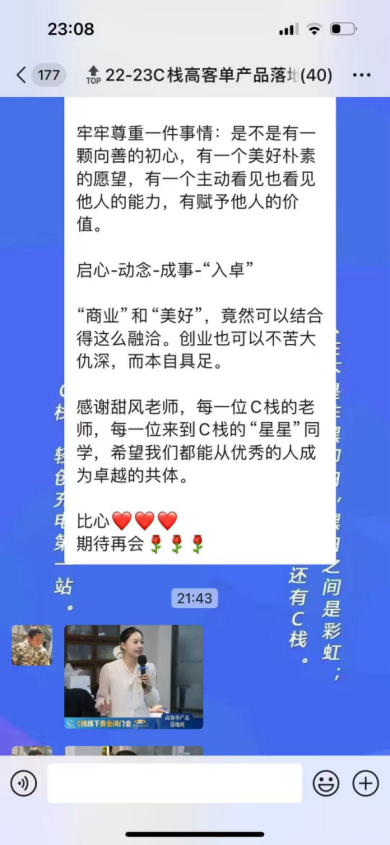 还有人观察到身边朋友陷在失业焦虑、创业迷茫中,更觉得“极简创业”是当下破局的最优解,而C栈的闭环陪跑,从打造尖刀产品到设计高客单成交流程,每个知识点都落地实用,彻底理顺了之前模糊的创业思路。