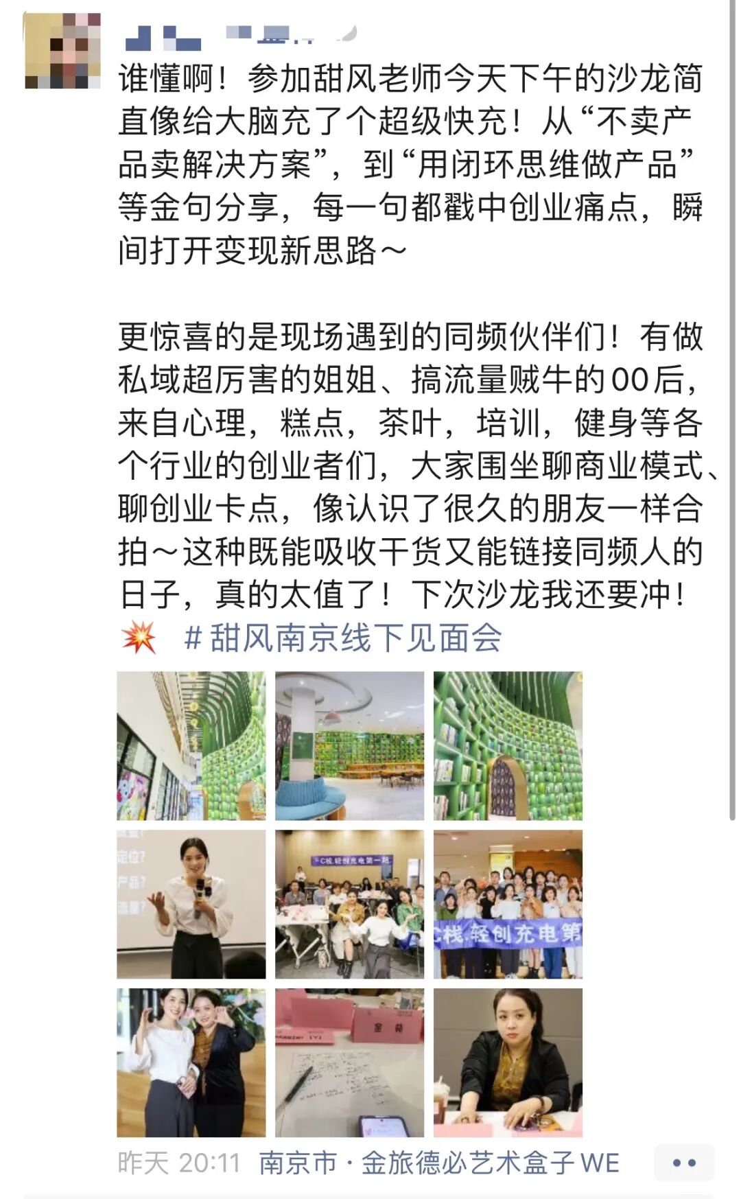 学员的反馈里写到说,甜风老师真的做到“不销而销”